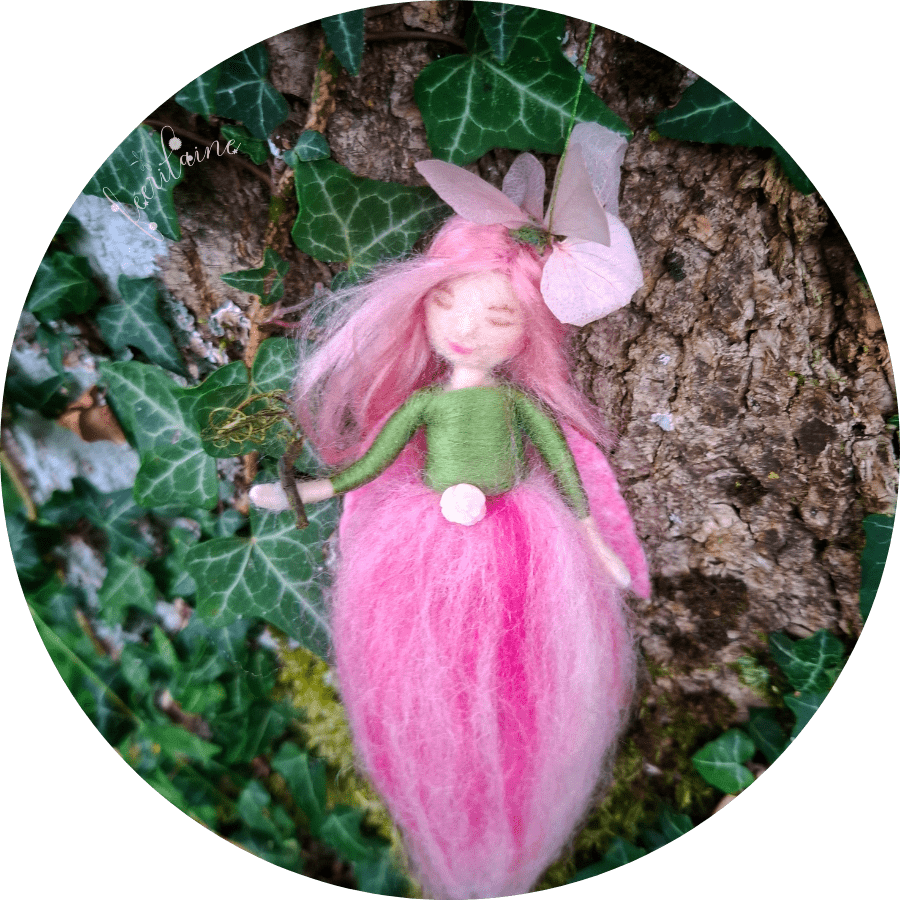 Quoi de plus doux qu’une petite fée de laine pour vous déposer de la poussière de joie, une pincée de magie du cœur, une présence enveloppante ou bien tout simplement un peu de poésie féerique… ♡ Accompagnée de ses pétales d’hortensias et de son ornement en forme de rose, elle sera une guide précieuse pour vous relier à votre magie intérieure à la fois douce et puissante… A vous de lui murmurer son message, son intention afin qu’elle les diffuse à l’être qui l’accueillera. Cette âme est le cadeau parfait à s’offrir comme petit bonheur ou à offrir pour tout passage de vie et évènement (naissance, anniversaire, soutien émotionnel…) ♡