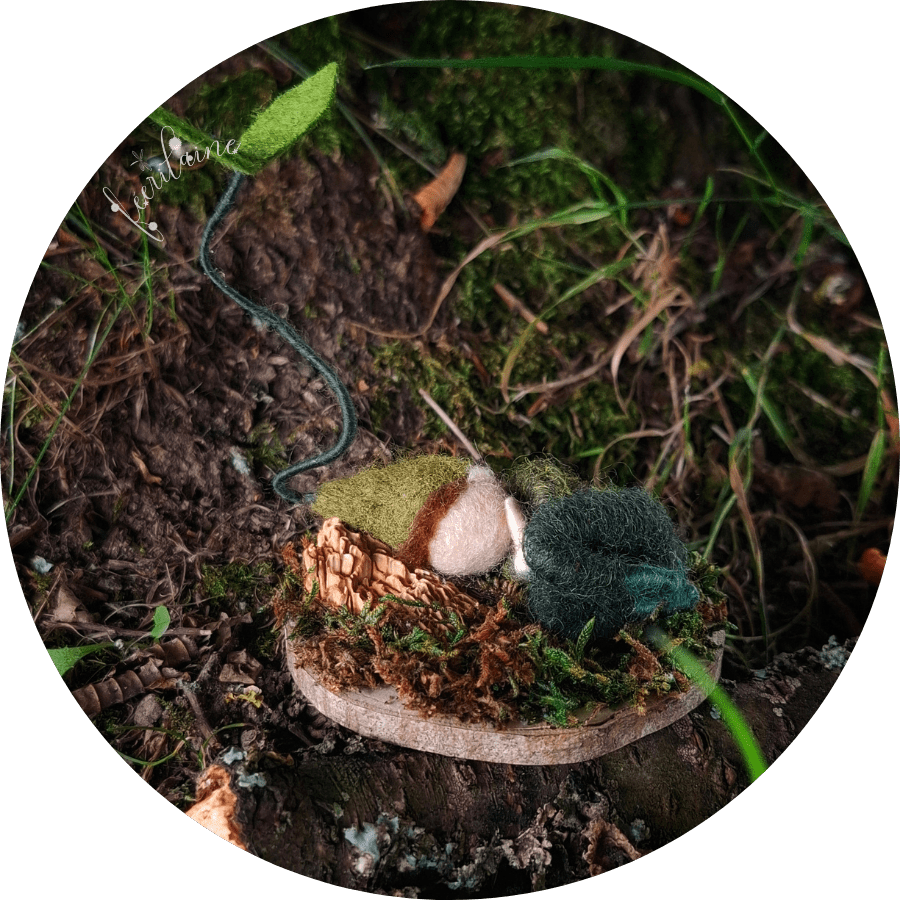 Il était une fois un petit lutin assoupi après une longue ballade au cœur du sous bois à explorer le petit monde visible et invisible… Un petit être remplit de douceur et de reliance avec la flore environnante… Il saura vous murmurer l’importance de se relier à la Nature… ♡